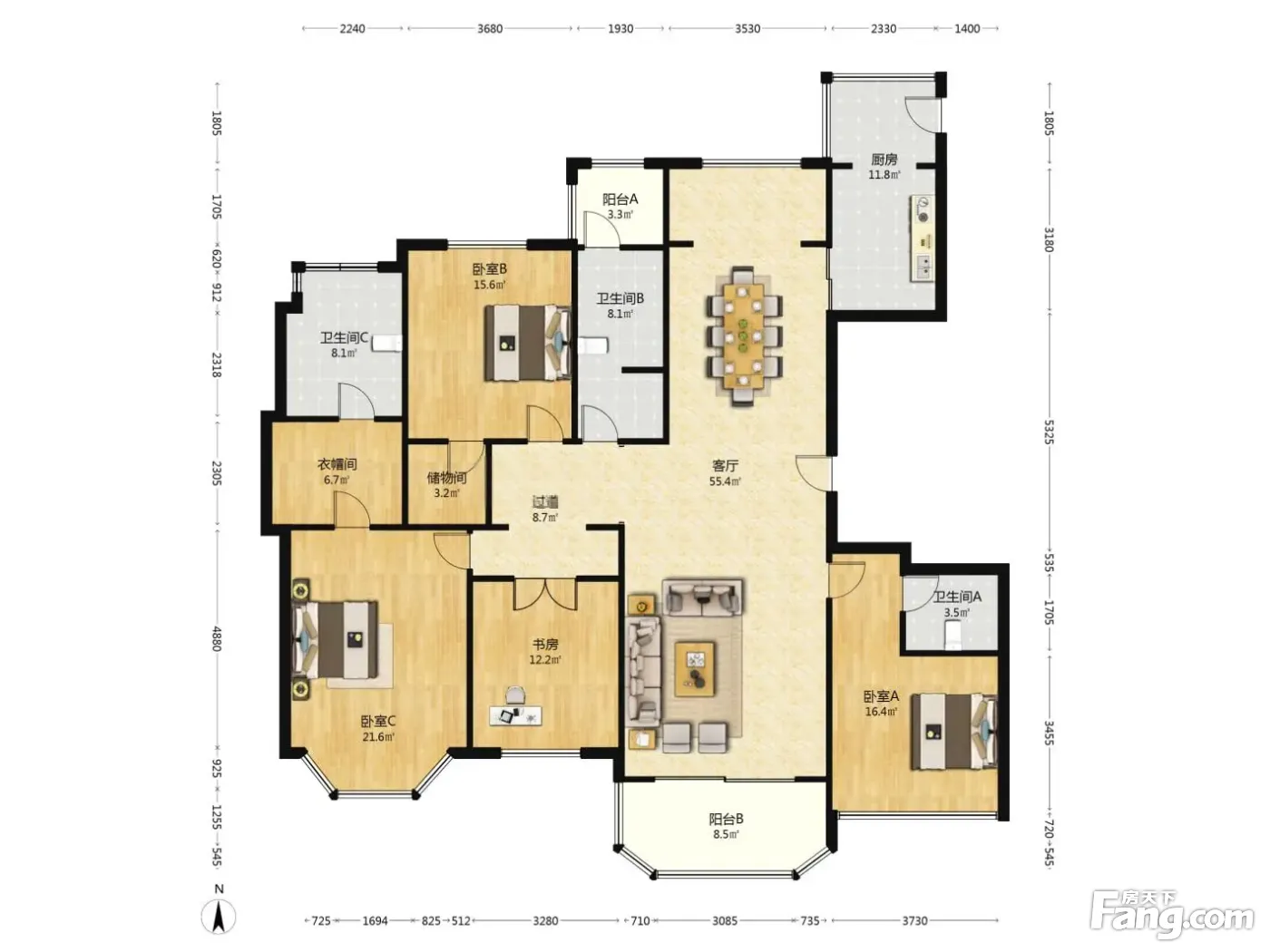 户型齐全,主打户型方正,独立衣帽间,明卫四居