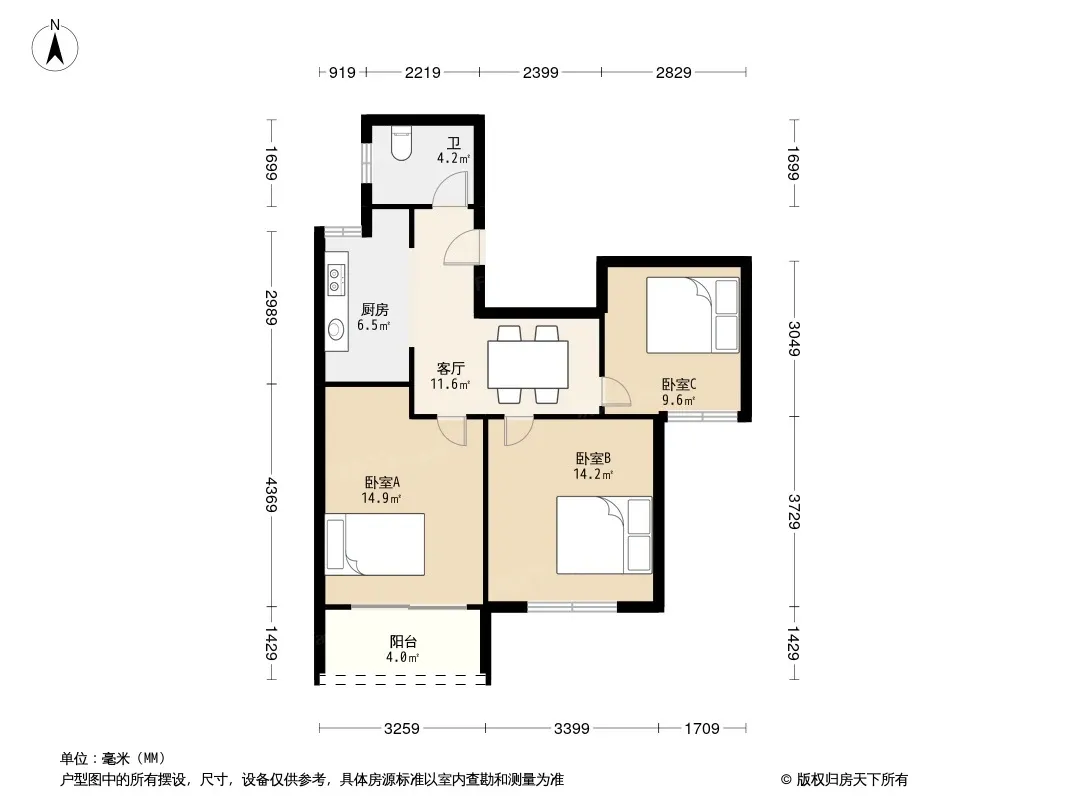 户型齐全,主打户型方正,明厨,明卫,双卧朝南,主卧朝南三居