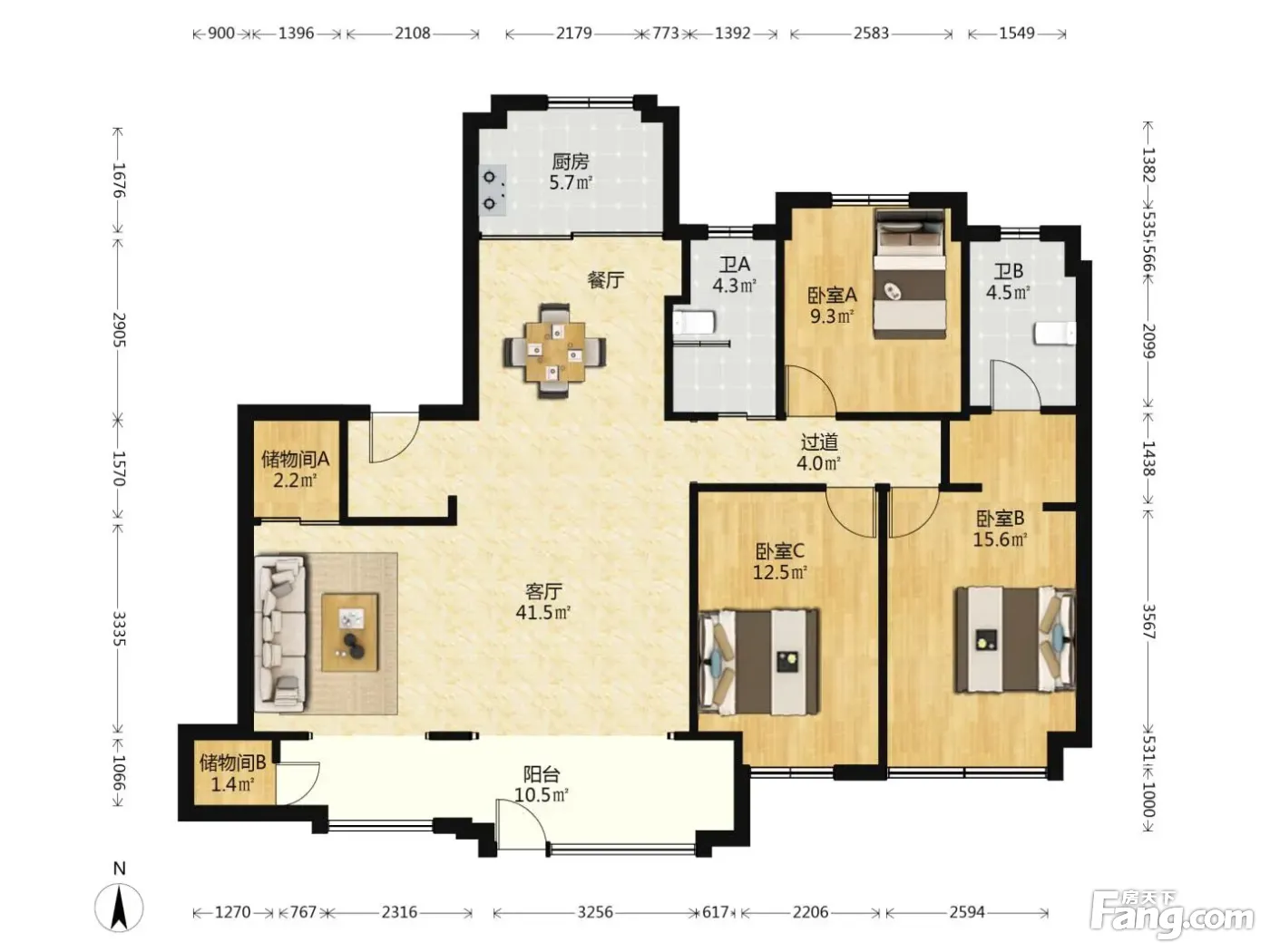 户型方正,利用率高,朝向好采光佳