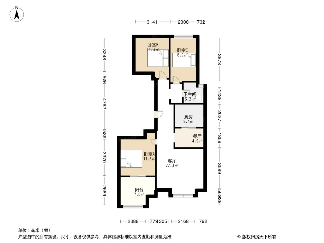 户型齐全,主打户型方正,明厨,明卫,客厅朝南,双阳台三居