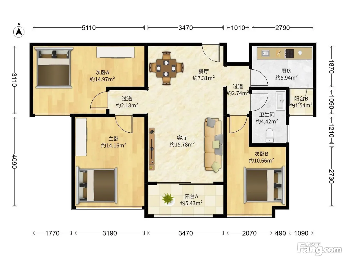 户型齐全,主打明卫三居