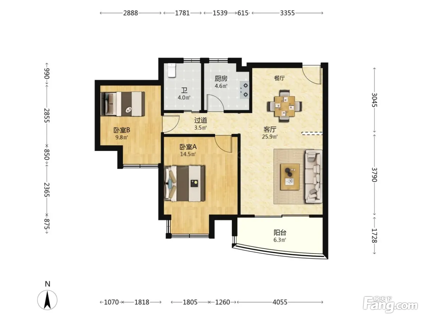 户型齐全,主打户型方正,明厨,明卫,客厅朝南,全明格局,双卧朝南,主卧朝南二居