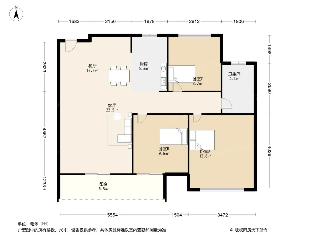 户型齐全,主打明卫,双卧朝南三居