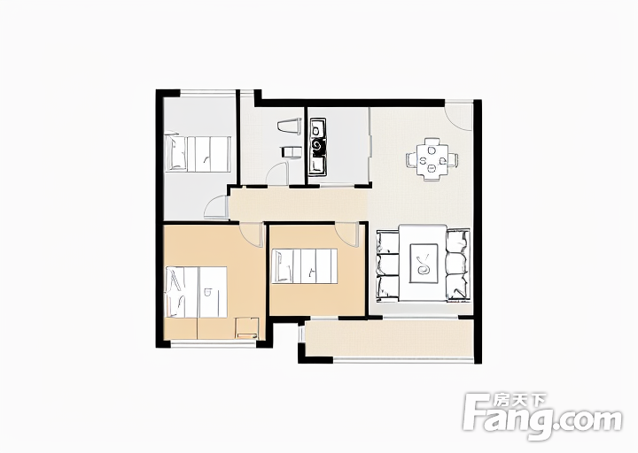 户型齐全,主打明卫,双卧朝南三居