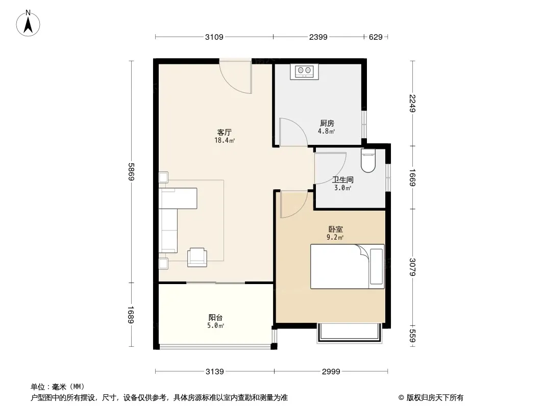 户型齐全,主打户型方正,明卫,明厨,客厅朝南,主卧朝南二居