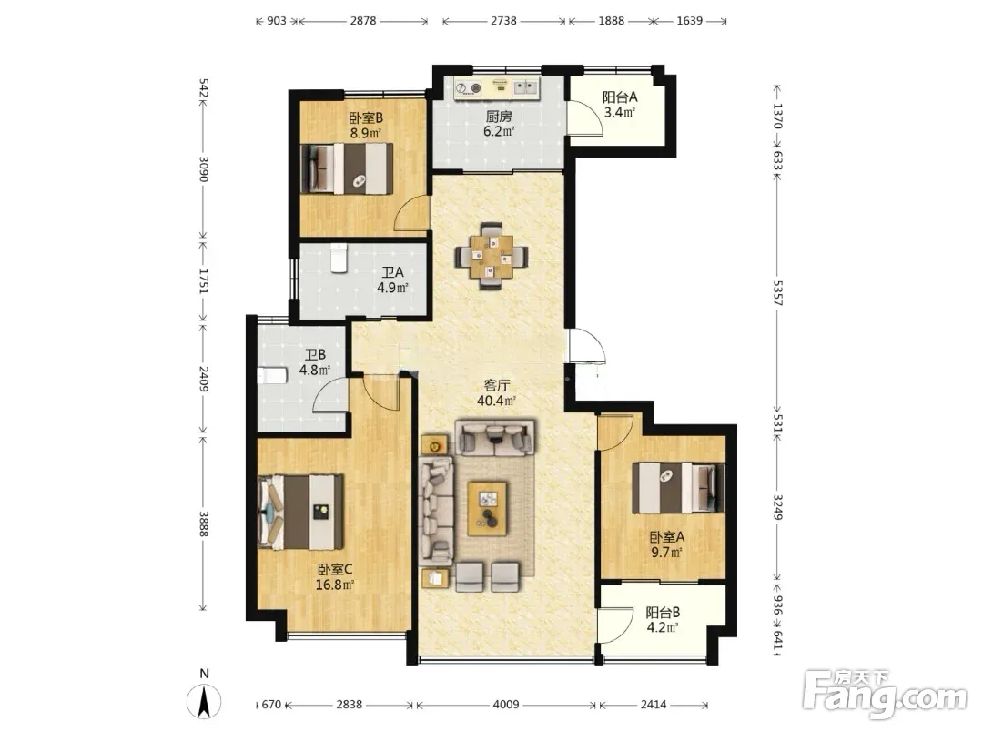 户型齐全,主打户型方正,明厨,明卫,客厅朝南,主卧朝南三居
