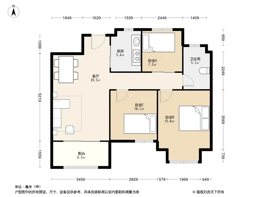 户型齐全,主打户型方正,明卫,明厨,客厅朝南,全明格局,双卧朝南三居