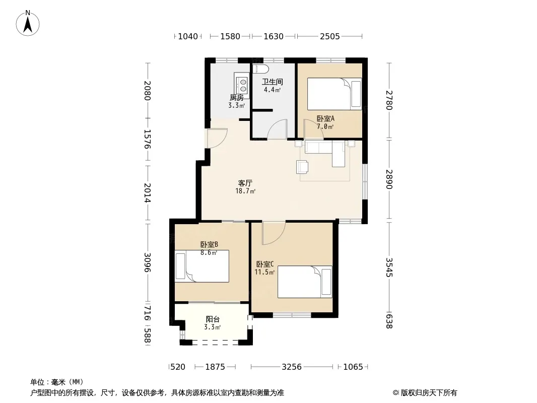 户型齐全,主打户型方正,明卫,明厨,客厅朝南,主卧朝南三居