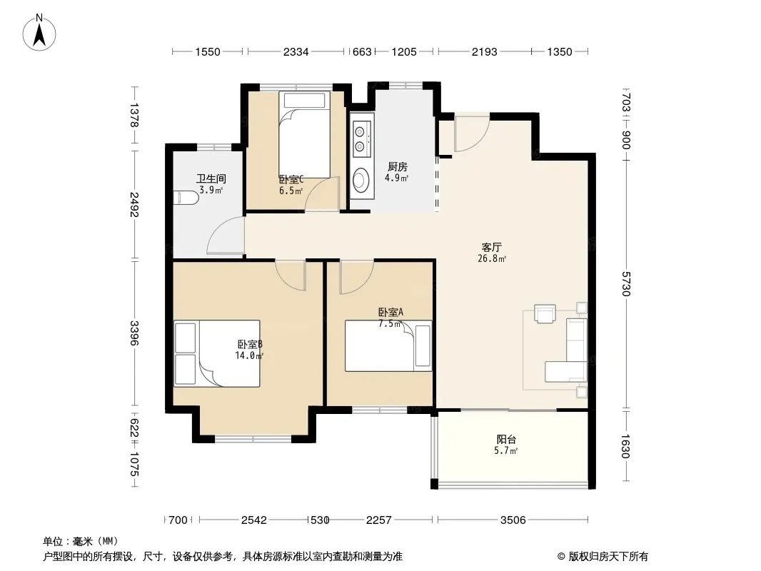 户型齐全,主打户型方正,明厨,明卫,客厅朝南三居