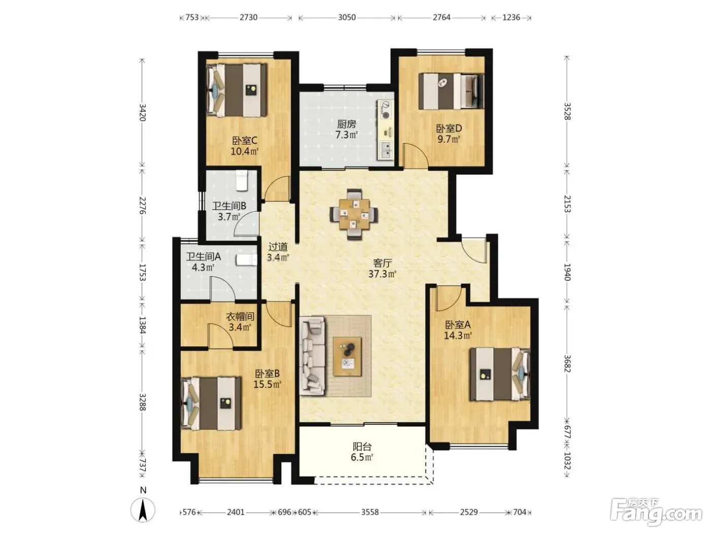 户型齐全,主打独立衣帽间,明卫,明厨,双阳台四居