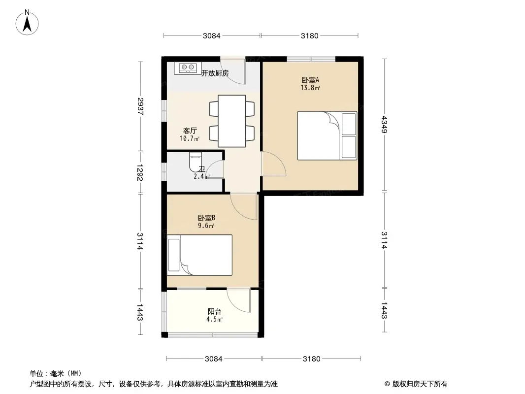 户型齐全,主打户型方正,明厨,主卧朝南二居