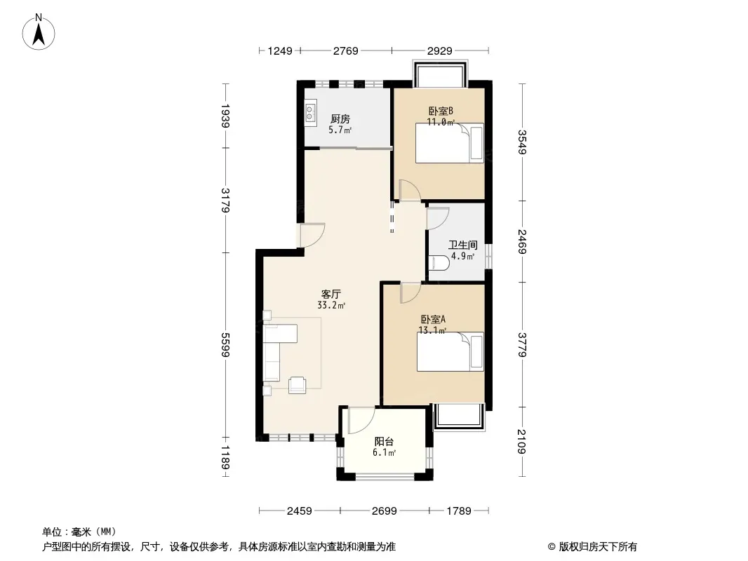 户型齐全,主打户型方正,明厨,双阳台,双卧朝南三居