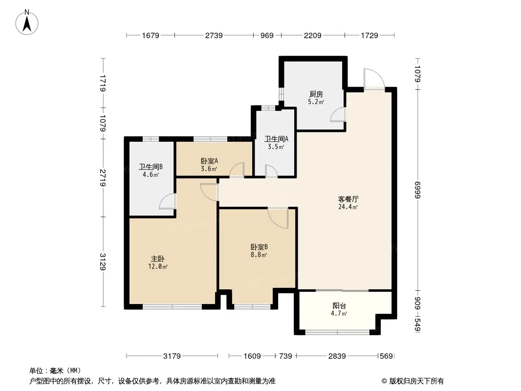 户型齐全,主打南北通透,三开间朝南三居