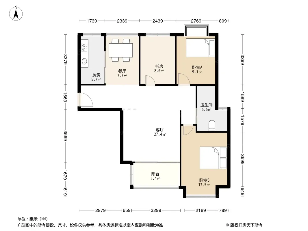 户型齐全,主打明卫,双卧朝南三居