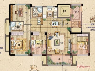 格兰晴天户型主要有80平-120平的户型方正,明厨,明卫,主卧朝南的三居 、116平-130平的明卫,明厨的四居 。