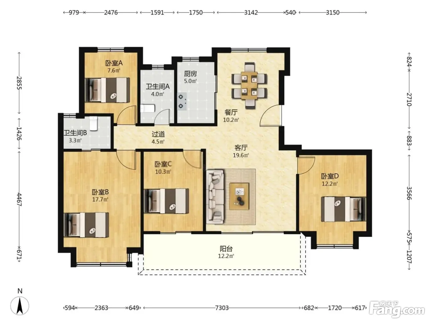 户型齐全,主打南北通透,全明格局四居