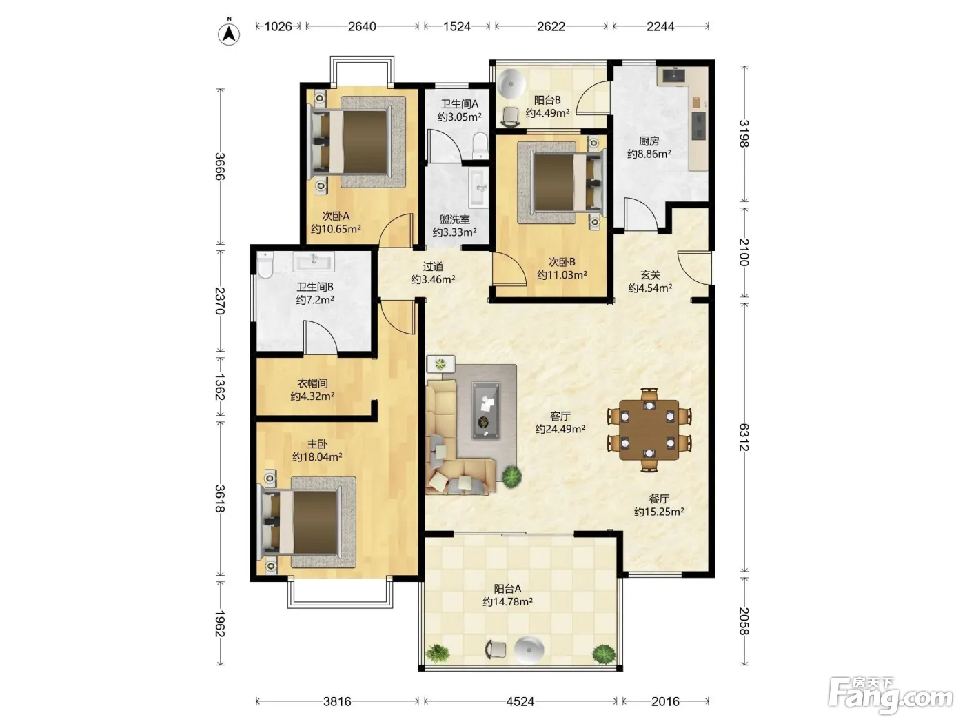 户型齐全,主打户型方正,独立衣帽间,明卫,明厨,主卧朝南三居