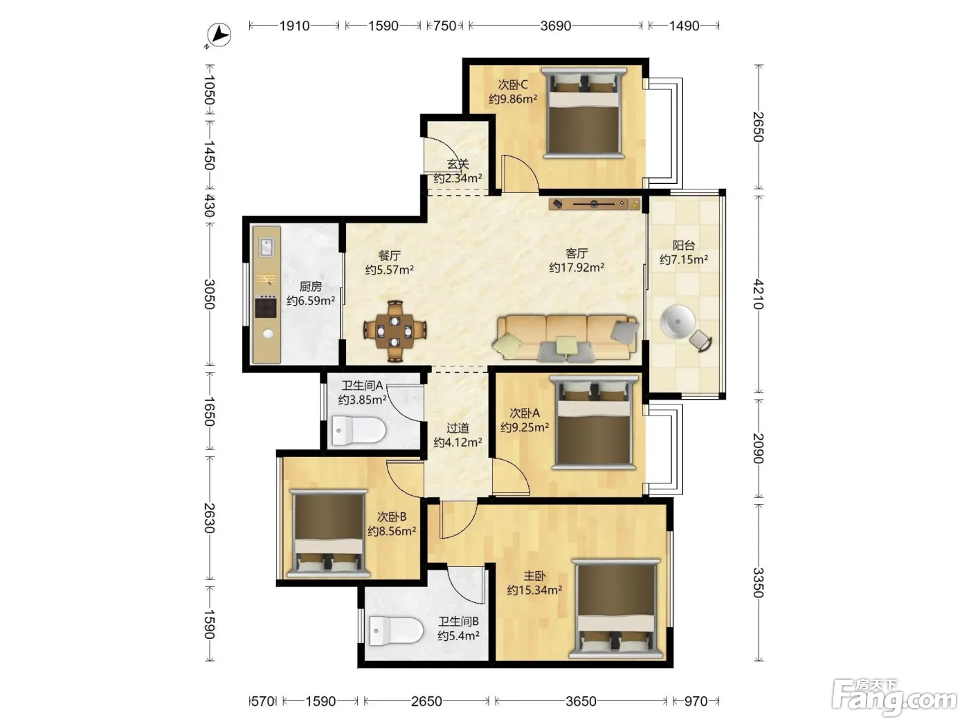户型齐全,主打户型方正,客厅朝南,主卧朝南一居