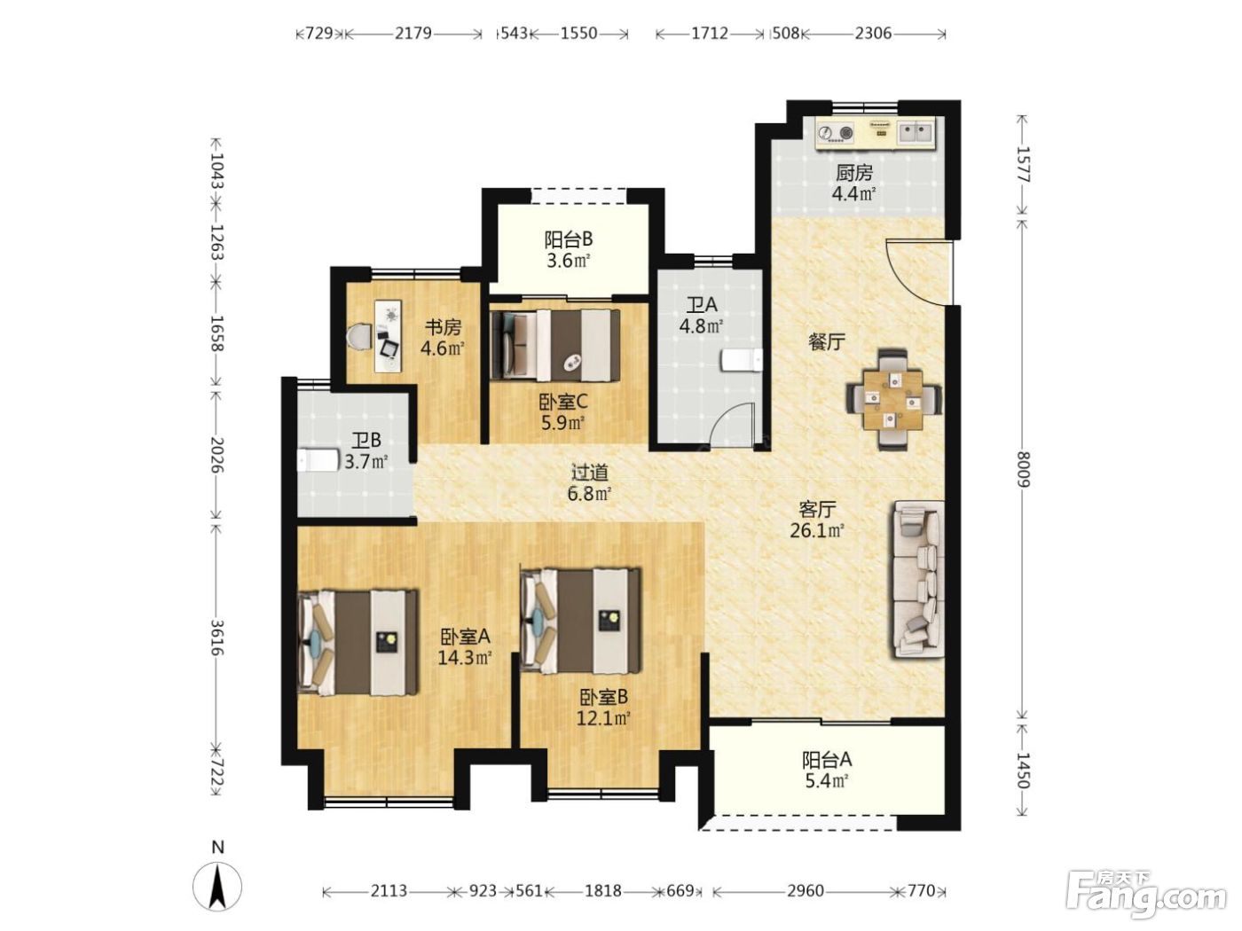 户型齐全,主打南北通透,主卧套间三居