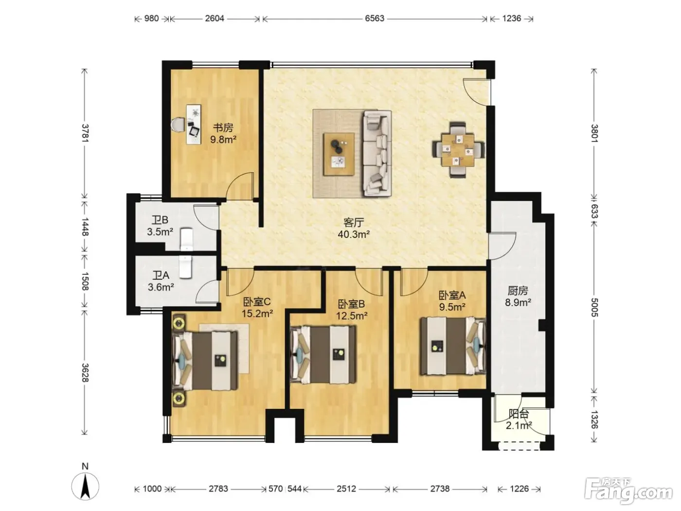 户型齐全,主打明卫,明厨四居