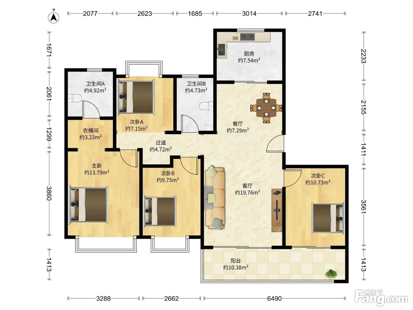 户型齐全,主打户型方正,明卫,明厨,独立衣帽间,客厅朝南四居