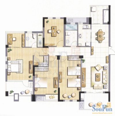 户型齐全,主打户型方正,明卫,明厨,主卧朝南三居