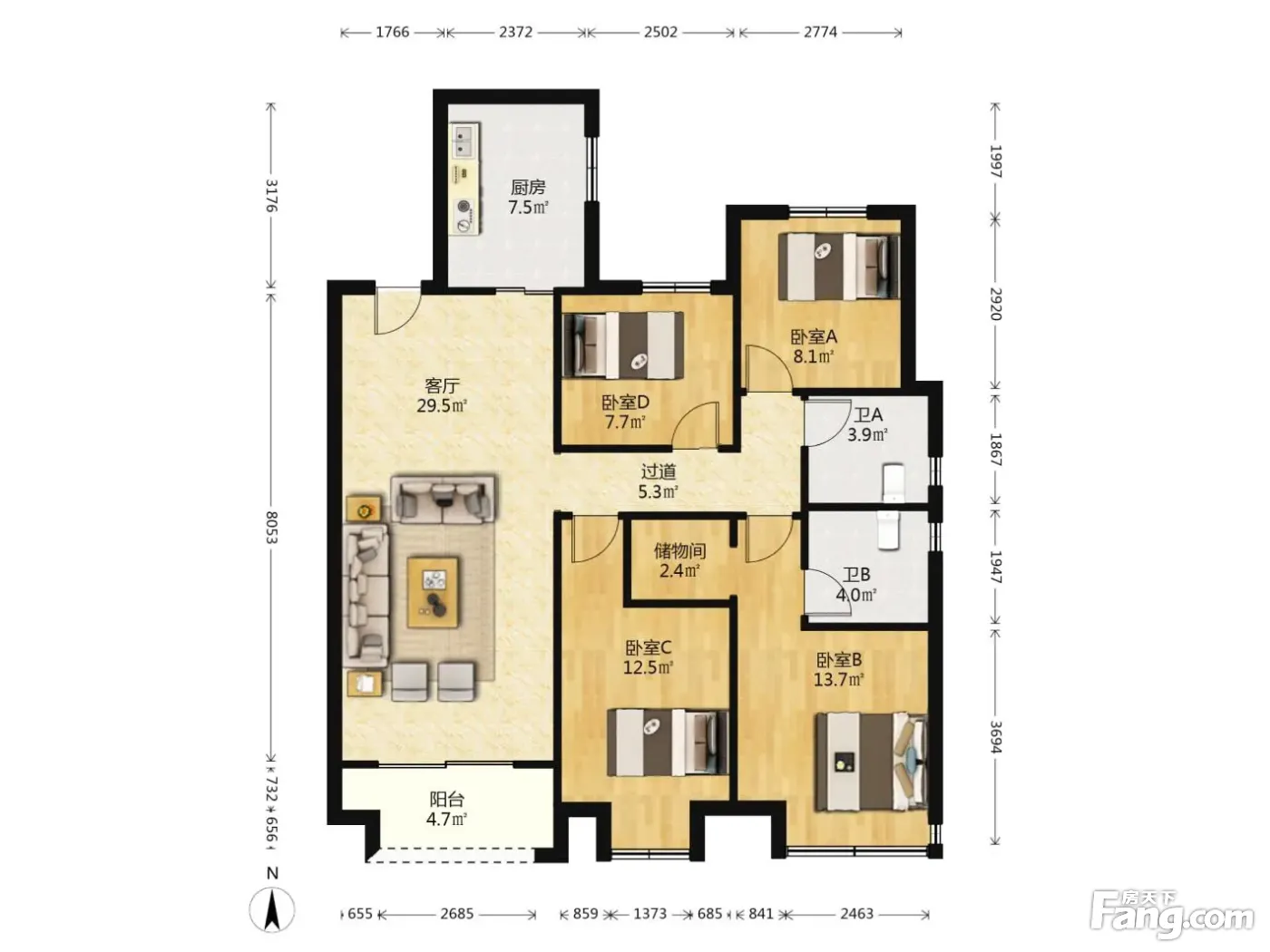 凯迪融创云潮中心 4室2厅 南