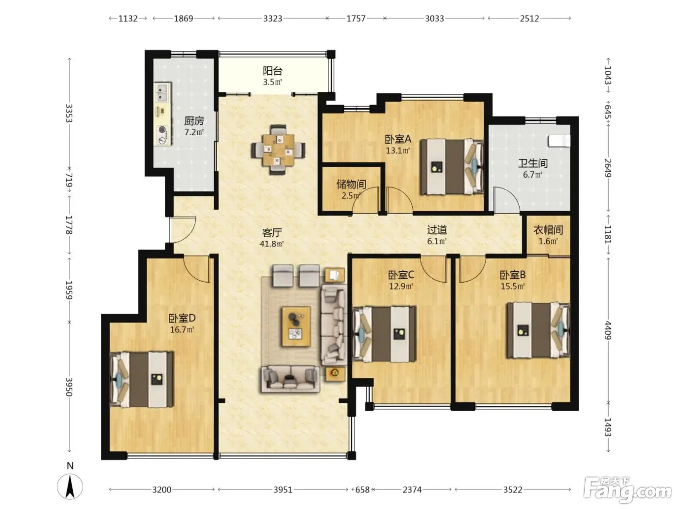 户型齐全,主打明厨,明卫,双阳台四居
