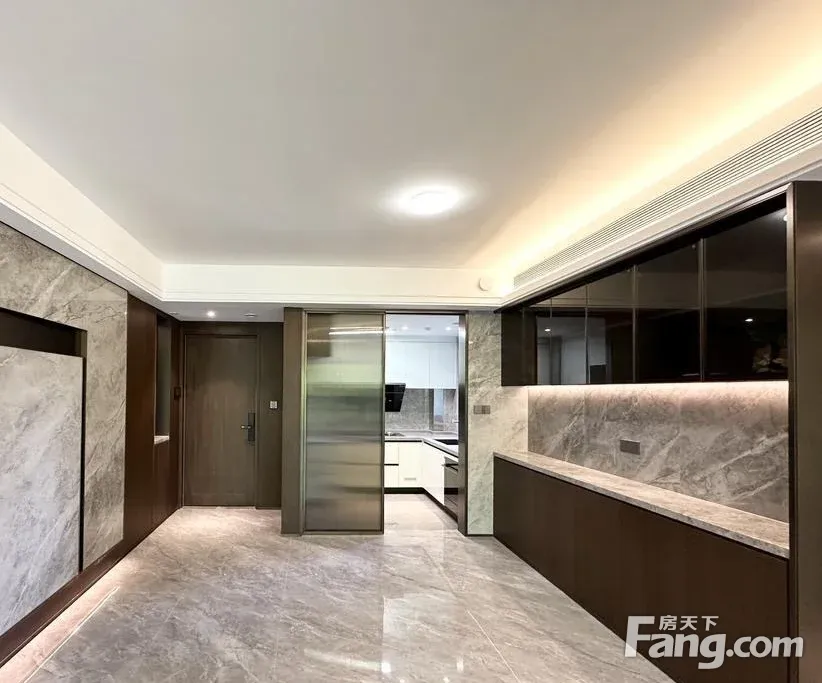 150平独立电梯前室,大横厅,通长背景墙石,很奈斯