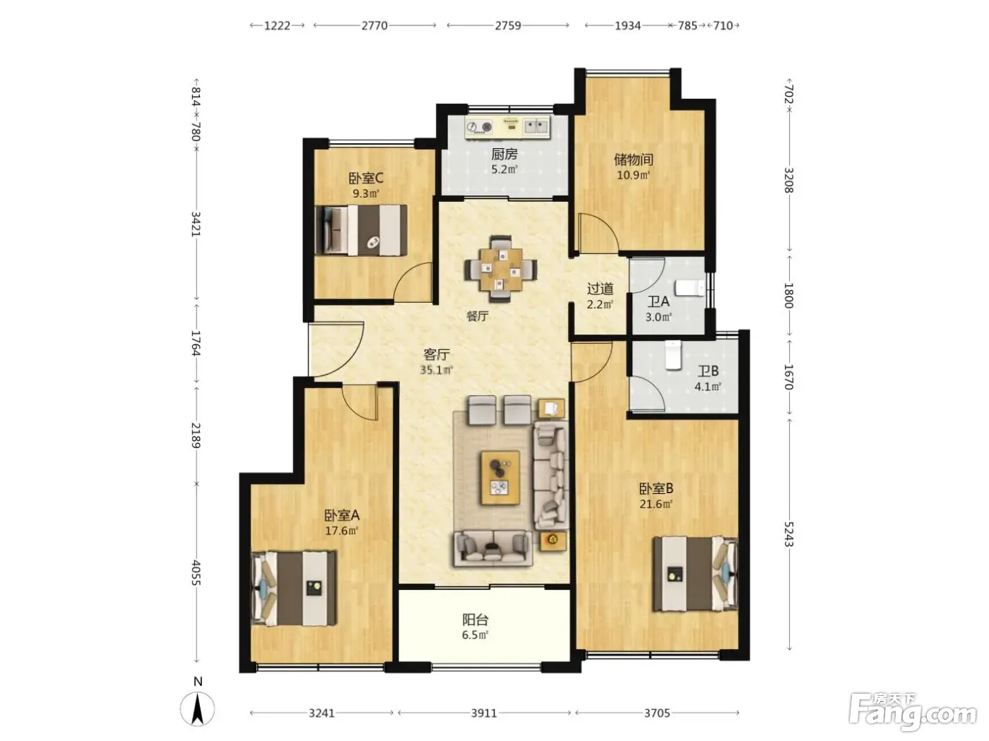 保利印江南三期 4室2厅 南