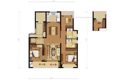 万科甲第十七户型主要有113平-115平的户型方正,明卫,明厨,独立衣帽间,双卧朝南的三居 、138平-170平的户型方正,主卧套间,观景落地窗,U型厨房,独立车库的四居 。