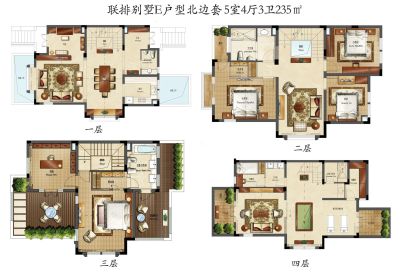 奥克斯龙溪谷别墅户型主要有Infinity平--Infinity平的的其他居 、213平-213平的主卧朝南,明厨,明卫,客厅朝南的五居 。