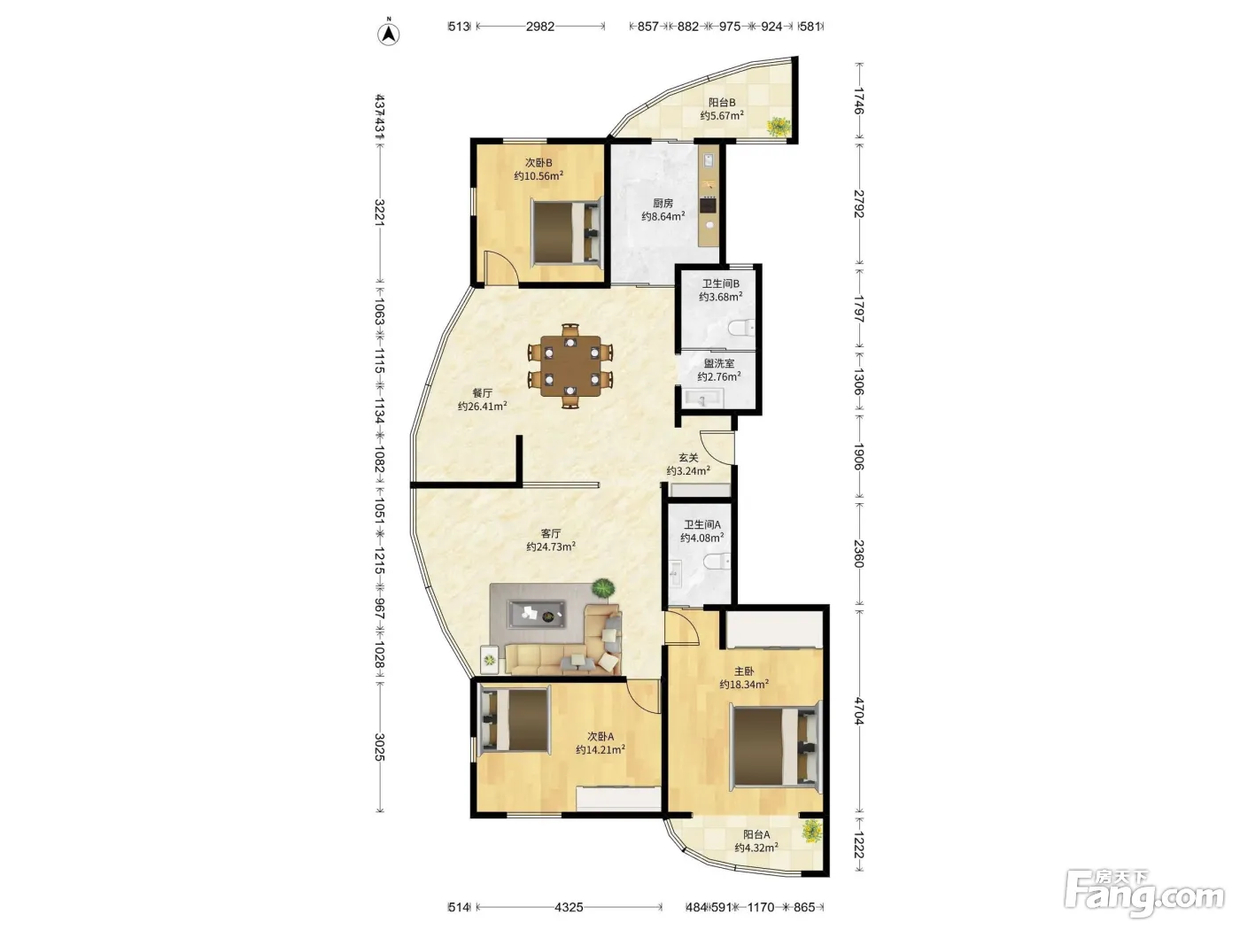 户型齐全,主打户型方正,明卫,独立衣帽间,客厅朝南,双阳台三居