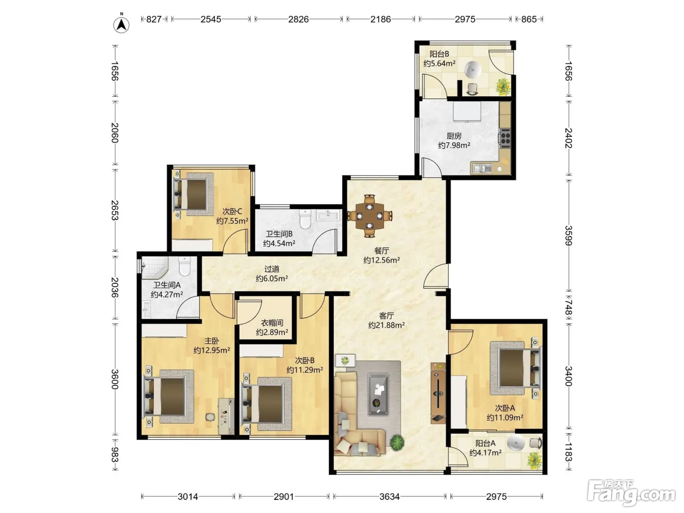 户型齐全,主打明卫,明厨,客厅朝南,双卧朝南四居