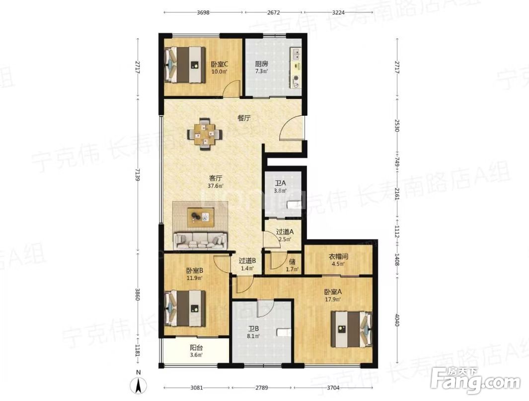 户型齐全,主打客厅朝南,卧室朝南四居
