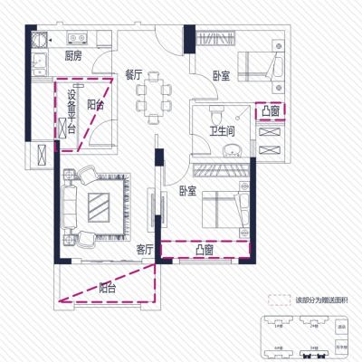 户型齐全,主打客厅朝南,主卧朝南,双阳台二居