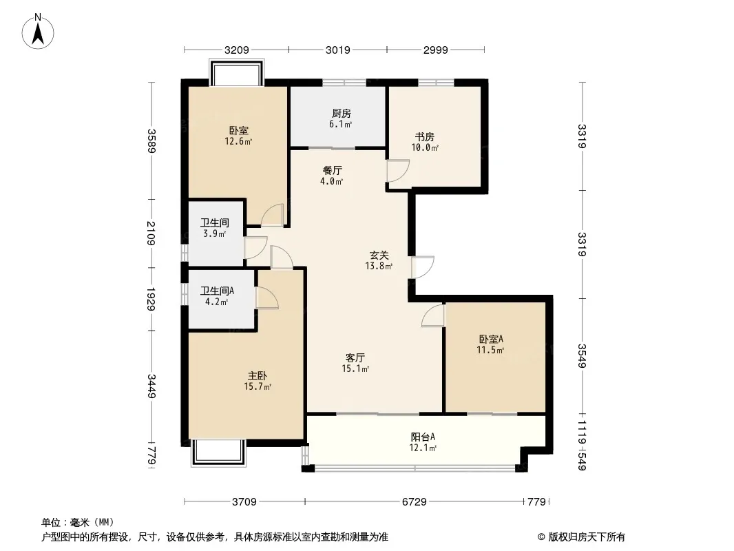 户型齐全,主打客厅朝南,卧室朝南三居
