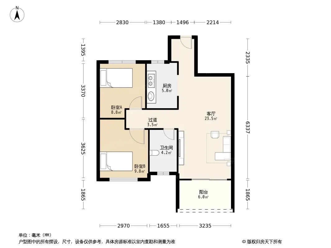 新建 新力钰珑湾 2室1厅 86.00㎡ 45万
