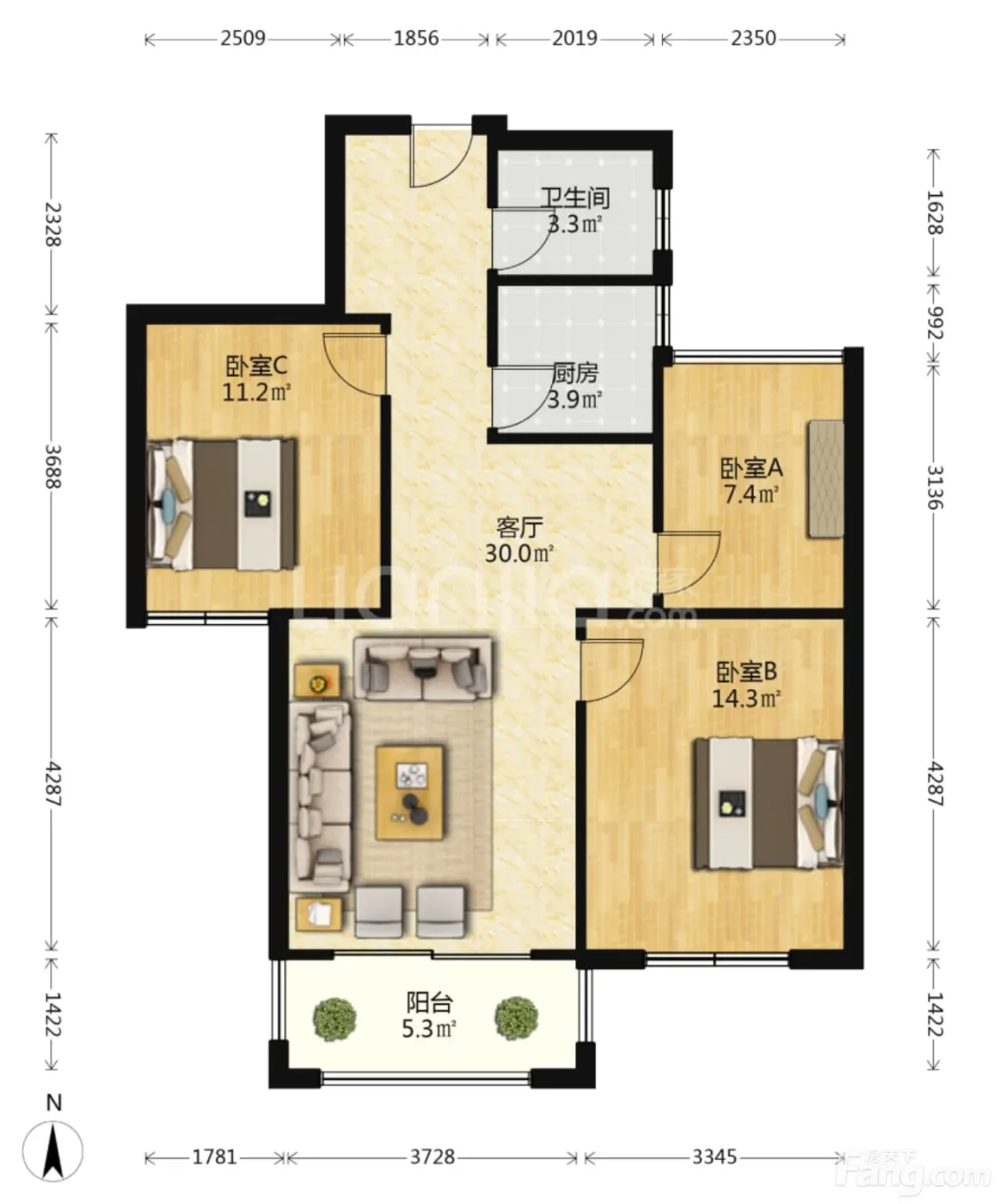 3室2厅1卫