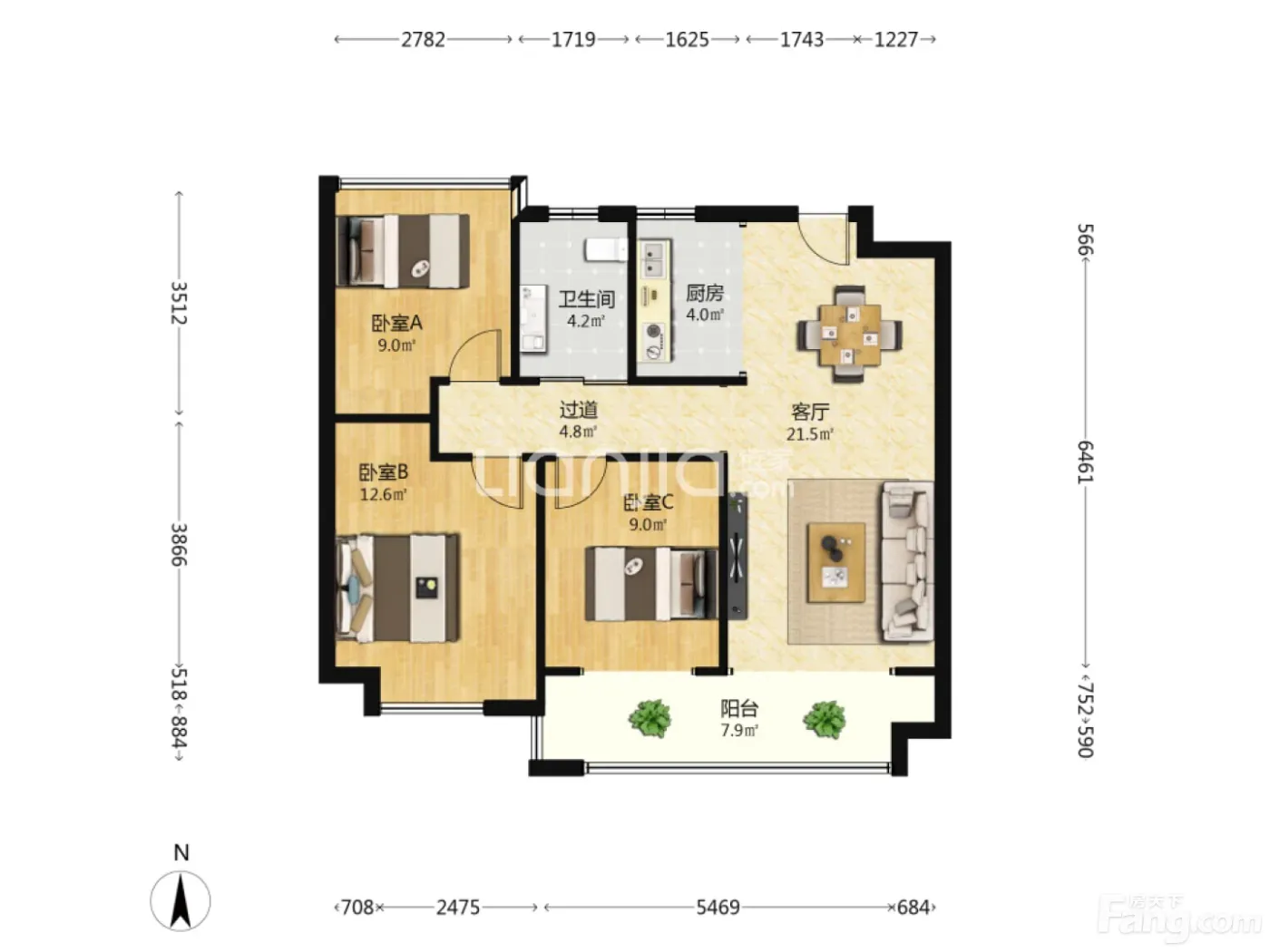户型齐全,主打南北通透,全明格局,户型方正三居