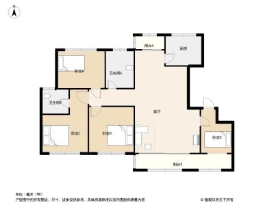 四房两厅,南北双阳台,两卧朝南,客厅朝南,户型方正,布局合理,太阳采光好