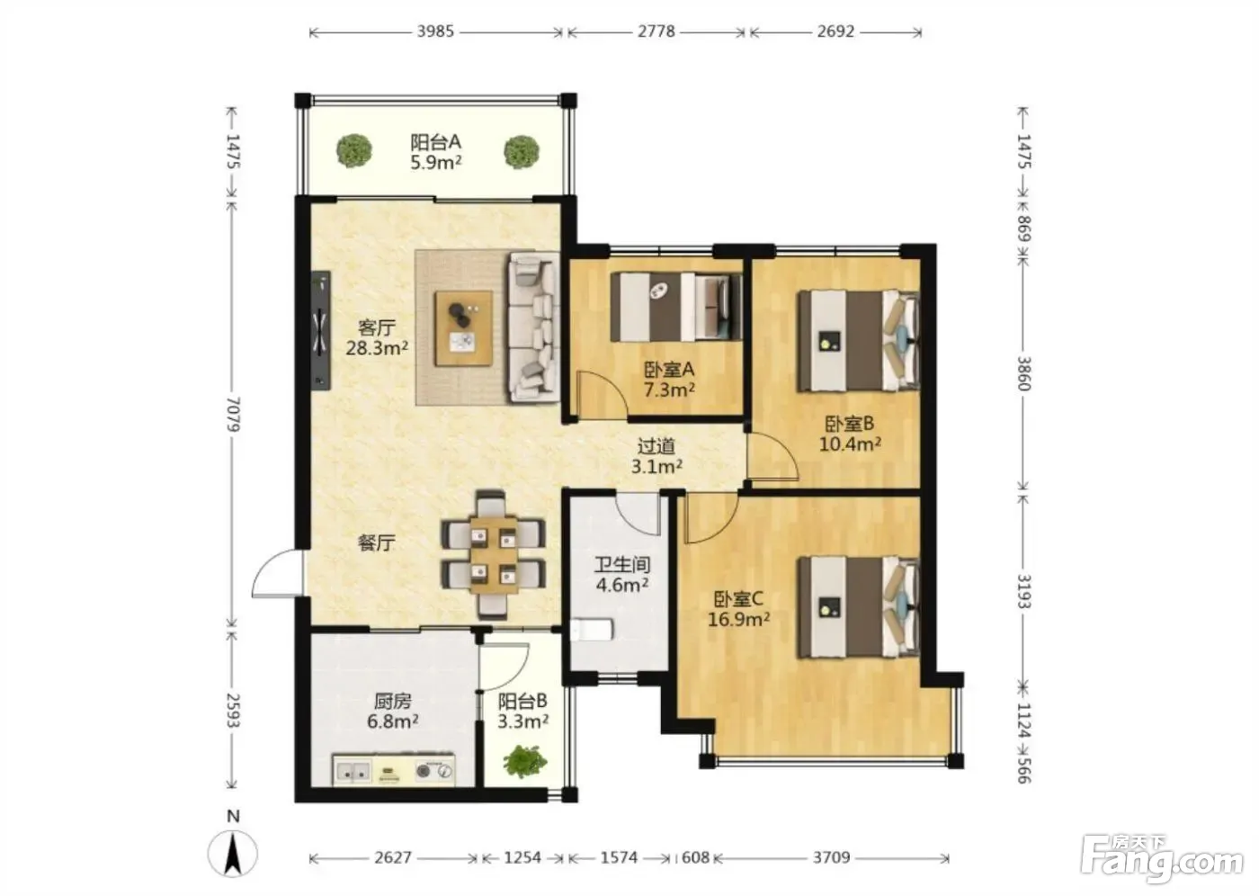 3室2厅1卫