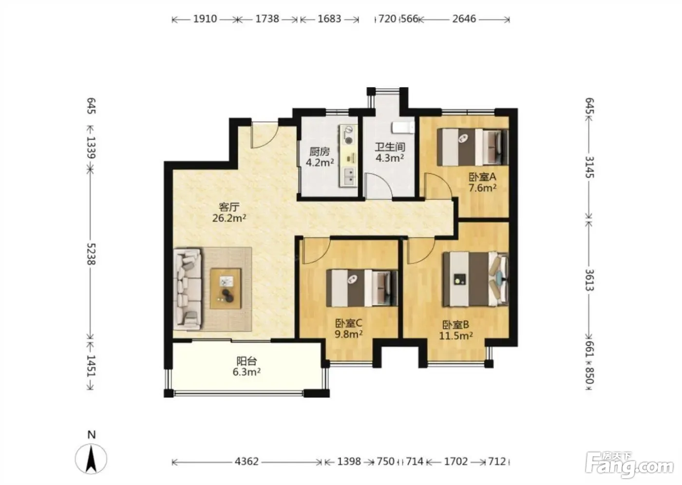 3室2厅1卫