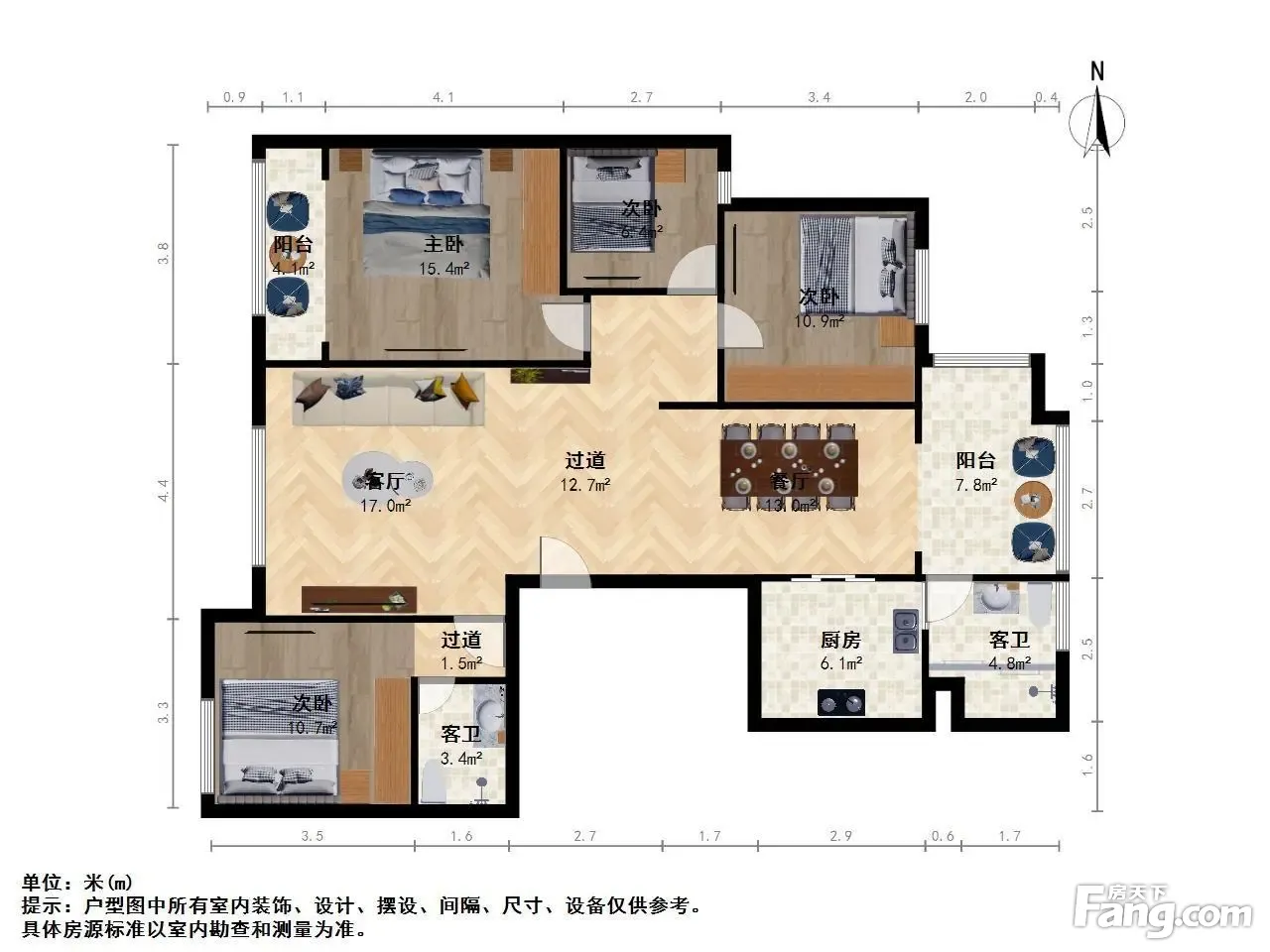 4室2厅2卫,建筑面积:120.00平米,朝向为南北向