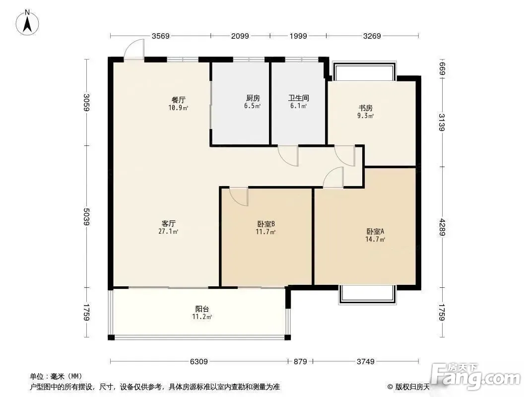 户型齐全,主打全明格局,户型方正三居