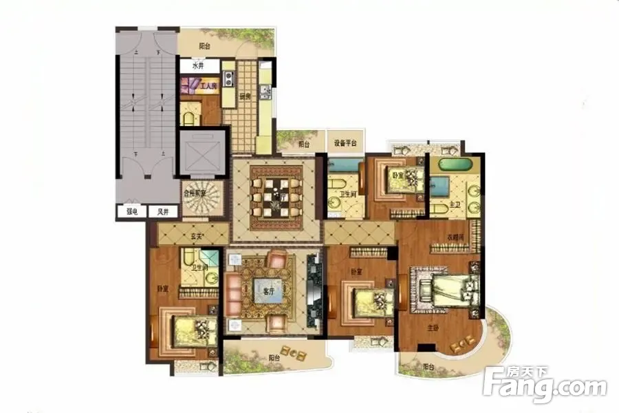 户型齐全,主打南北通透,全明格局,户型方正,采光充足,三开间朝南,主卧带卫,干湿分离,大面宽阳台四居