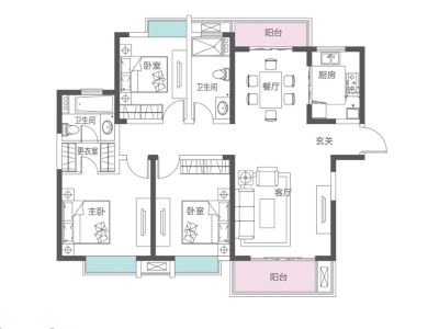 户型齐全,主打户型方正,明卫,双阳台,双卧朝南,主卧朝南三居