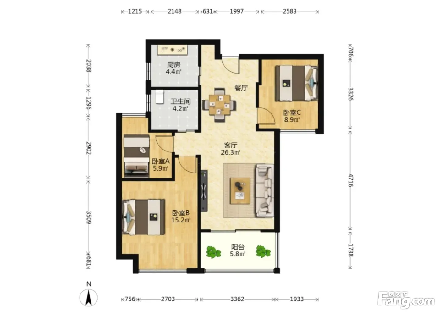 3室2厅1卫