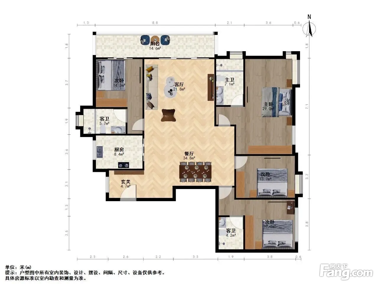 全明户型,设计合理,方正大气,南北通透,采光性通风性都很好。