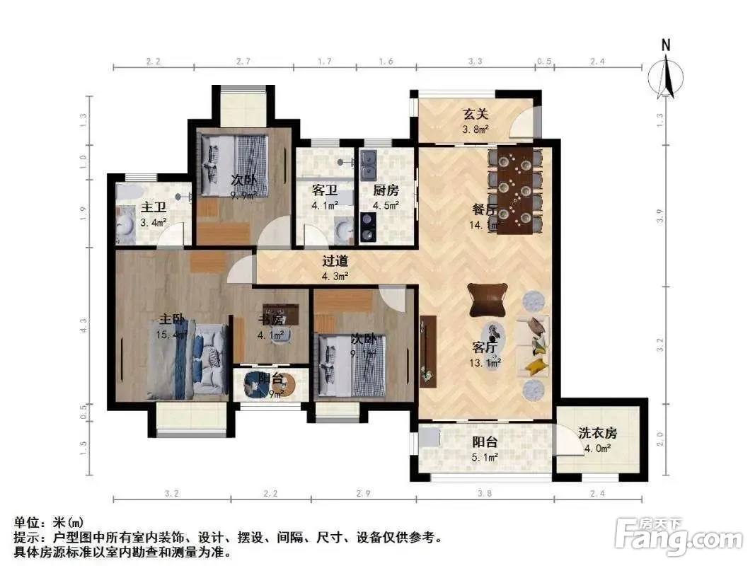 全明户型,设计合理,方正大气,南北通透,采光性通风性都很好。